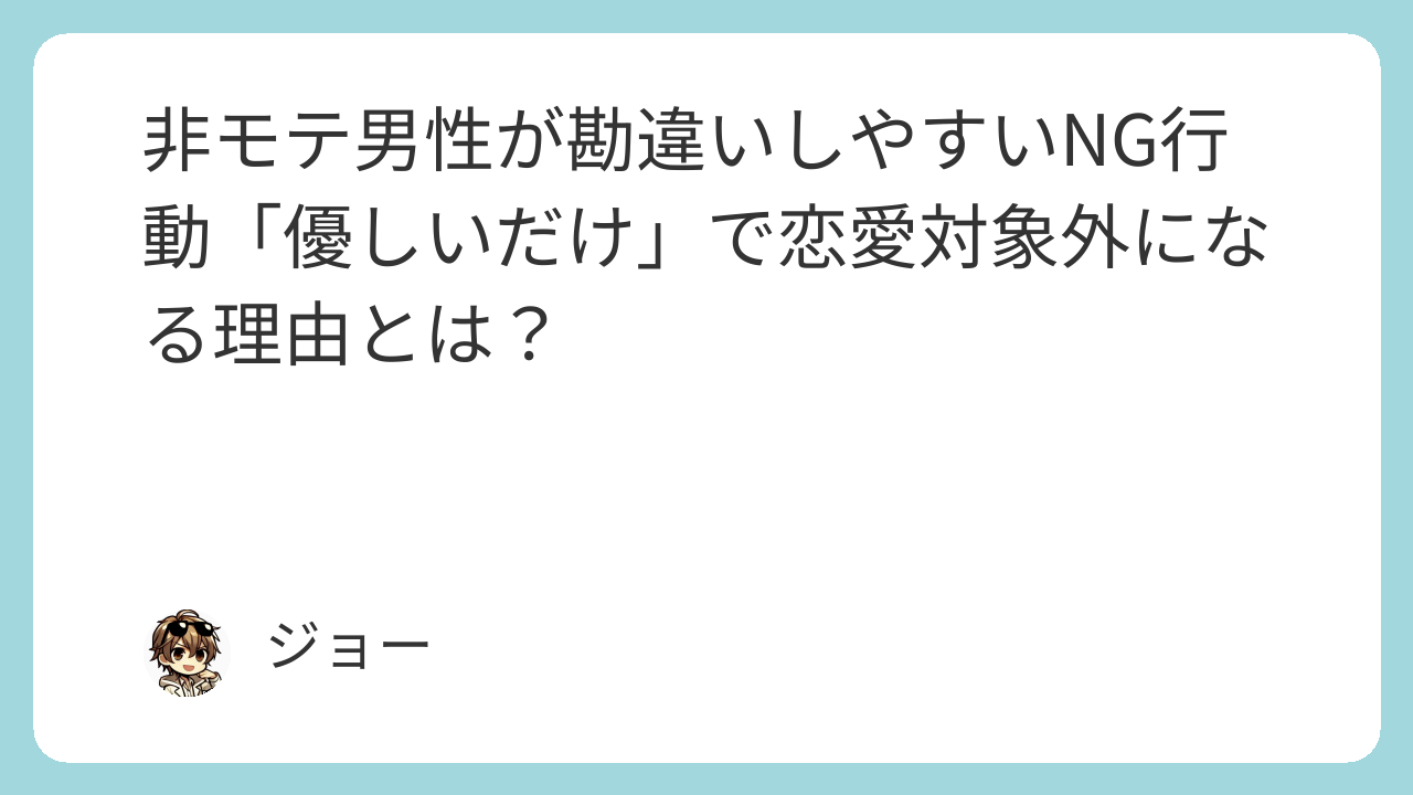 「優しくしてるのに恋愛対象になれないのはなぜ?」